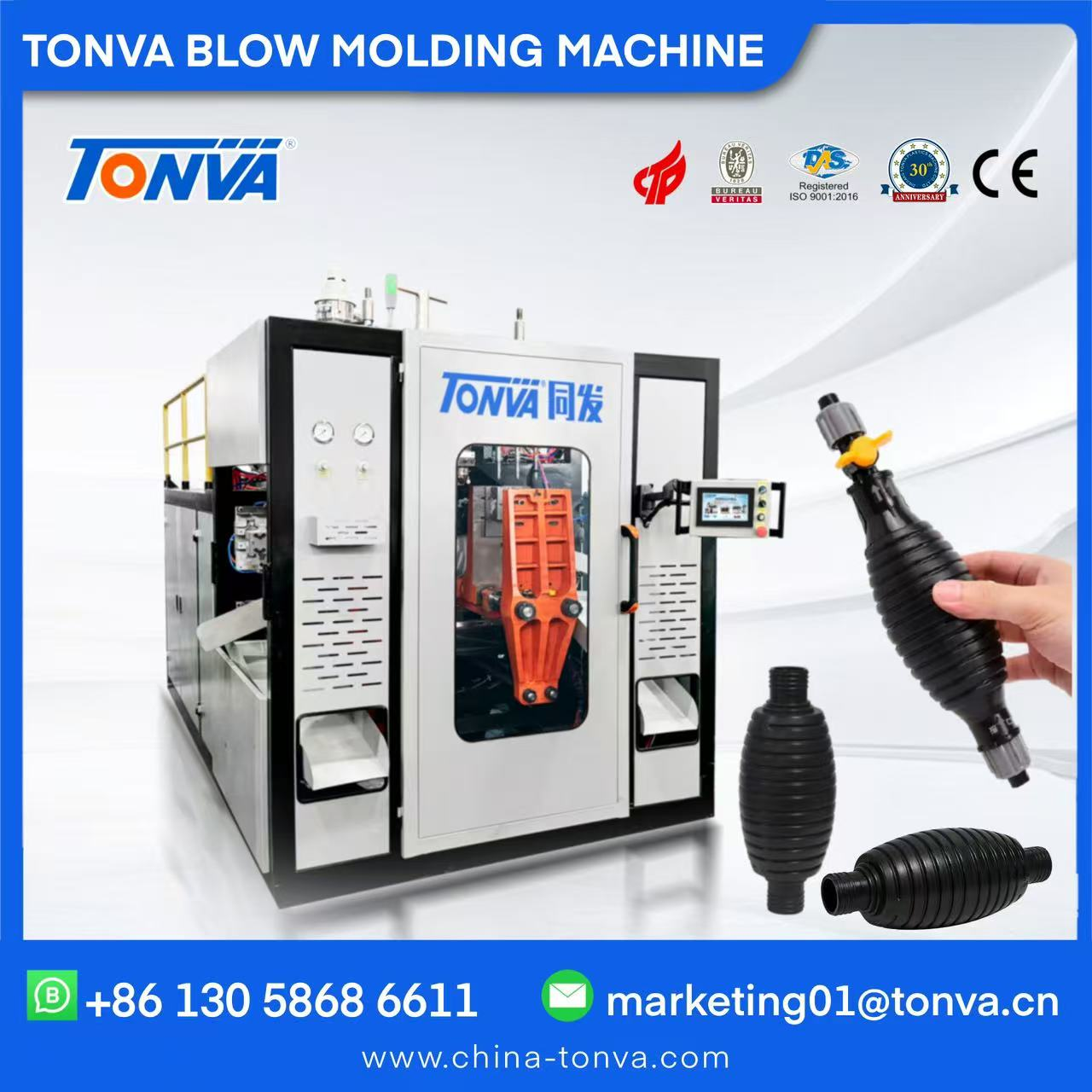 TONVA hybrid blow molding machine can be customized with 1 ~ 10 cavities for meet difference requirements for output. This machine is a 3 cavities full automatic blow molding machine. We have customized a unique waste separation system for the oil extractor suction pump, combined with TONVA precision molds, to facilitate the rapid transfer of finished products and the recycling of waste. The fully automated production mode significantly reduces the production cost of products and can be used to manufacture car oil extractors, fish tank water absorbers, wine extractors, water pressure airbags, etc
